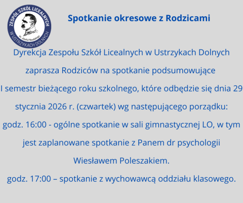 Dnia 29.09.2025 r. odbyło się walne zebranie Rady Rodziców Liceum Ogólnokształcącego im. Józefa Piłsudskiego w Ustrzykach Dolnych. Rada Rodziców i dyrekcja szkoły podziękowały Panu Michałowi Wnukowi – przewodniczącemu i Pani Anecie Wojtanowskiej – sekretarzowi za czteroletnią pracę w prezydium RR. … Read More
