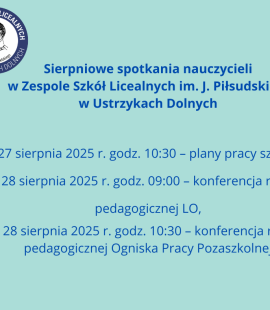 Dnia 29.09.2025 r. odbyło się walne zebranie Rady Rodziców Liceum Ogólnokształcącego im. Józefa Piłsudskiego w Ustrzykach Dolnych. Rada Rodziców i dyrekcja szkoły podziękowały Panu Michałowi Wnukowi – przewodniczącemu i Pani Anecie Wojtanowskiej – sekretarzowi za czteroletnią pracę w prezydium RR. … Read More
